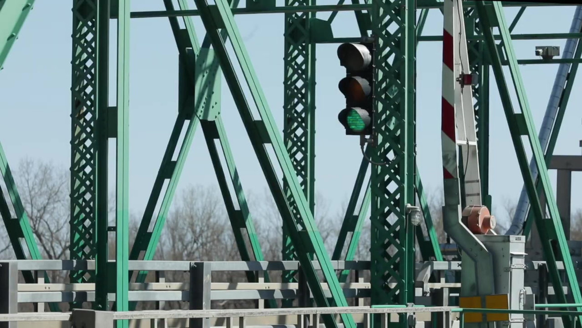 Barge Passing Under Joe Page Bridge Main Lift, Looking North
